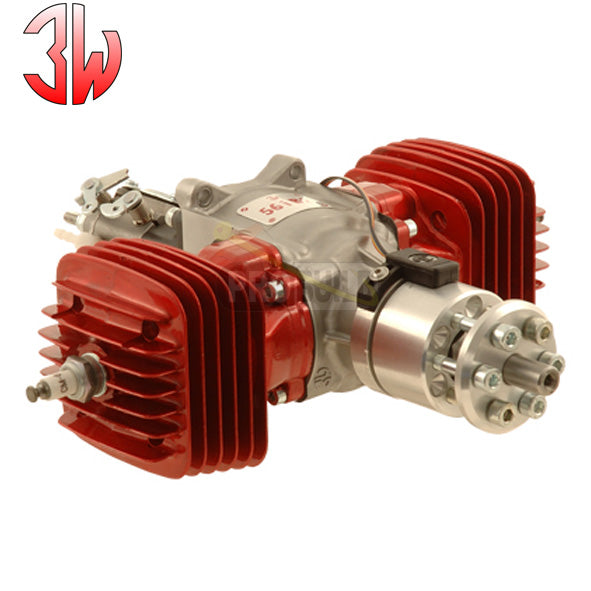 Suitable for 3D-flying of our XTRA/230 and VOTEC/230-FUNS or other Funflyers with a maximum take off weight of 9,0kg. Our small boxer engine is characterized by its soft running and low weight. The combo package of engine and muffler system has approximately the same weight like our 3W-55i combo. A good choice for Scale models and for towing Sailplanes. The crank shaft with its 3 ball bearings ensures proper running characteristics. With a suitable 3W-muffler system a power out put is possible which can be compared with 70ccm engines of other manufactures.
