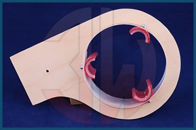 The muffler mount is suitable for muffler bodies with 55mm and 85mm diameter. Due to its flexibility it is possible to mount the muffler in different positions. The muffler mount will be modified to suit the fuselage and fixed onto it. Now the muffler is mounted and than the glass fibre ring glued onto the mount.