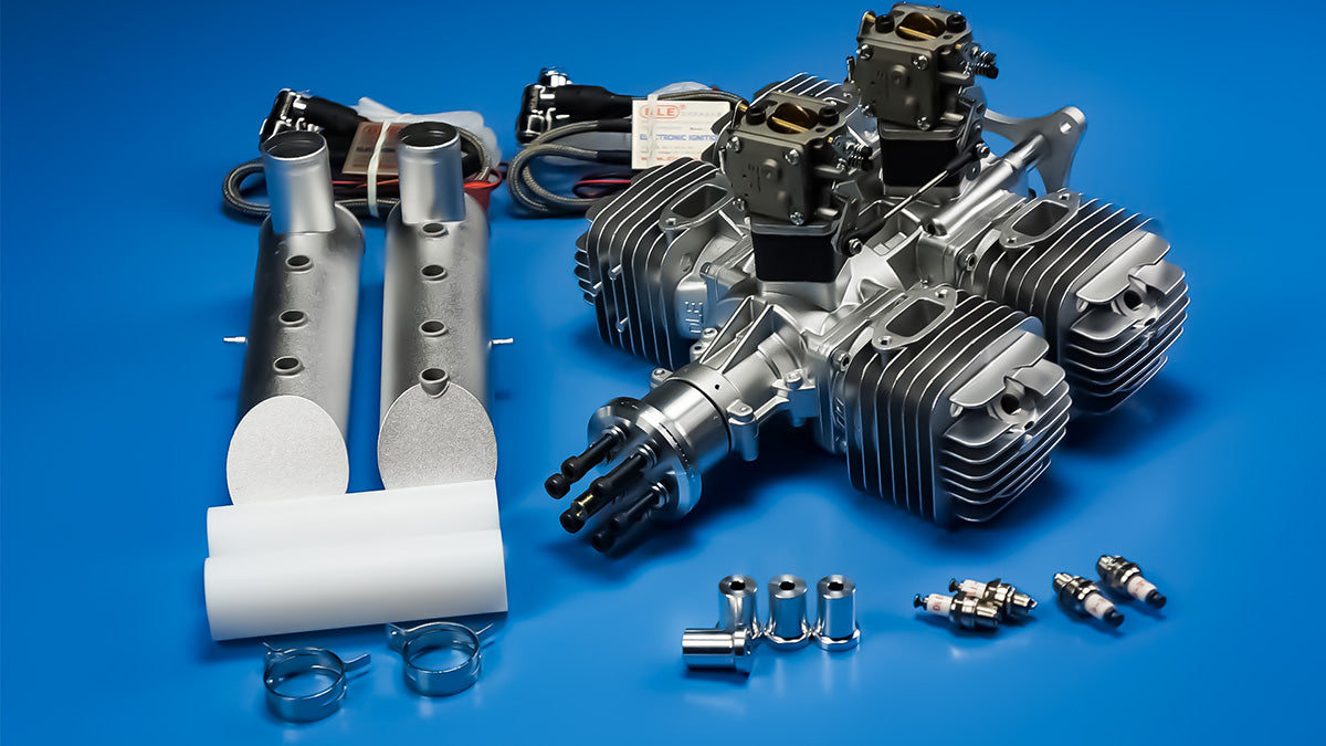 A 222cc four-cylinder powerhouse delivering 21.5 hp, ultra-smooth operation and exceptional reliability for the largest RC aircraft. Includes dual ignition, mufflers, hardware and standoffs.