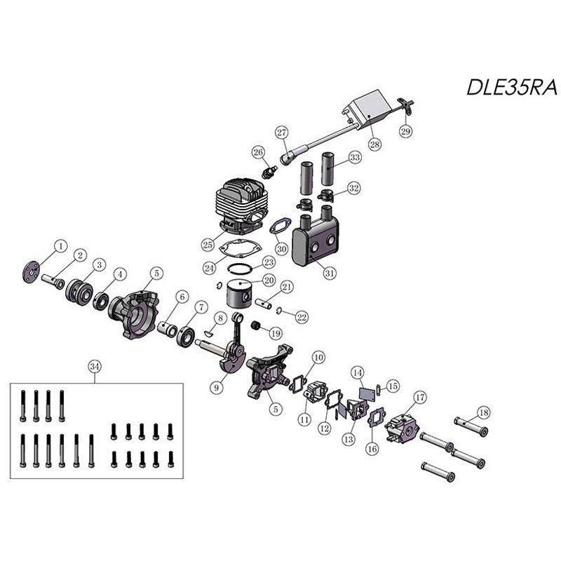 Includes: Electronic ignition, muffler, spark plug, gasket, bolts, machined aluminum standoffs, throttle arm extension & manual