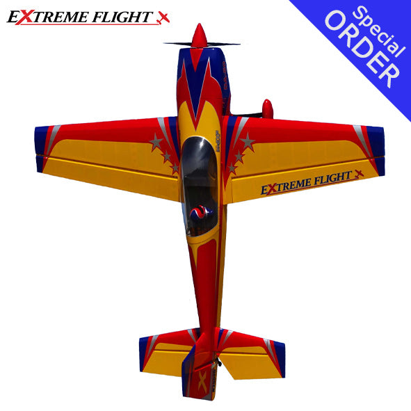 40% XA and 3D is here! Extreme Flight is Back in the Big Bird game! We've taken our legendary and contest proven 40% Extra 300 and integrated all of our new tech and aerodynamic tricks to create the ultimate 40% aerobatic beast! If low and slow is your thing, the Extra will become your best friend and you'll instantly feel comfortable and confident down low. If you like XA and precision flight characteristics the Extra will simply blow you away! Crisp and agile, the Extra has a super fast roll rate rivaling our 120cc models, beautiful snap characteristics and the ability to draw gorgeous lines in big sky aerobatic sequences. Available in 2 gorgeous standard (non printed) Oracover schemes including the officially licensed Jim Bourke full scale Extra scheme and a new RED/WHITE/BLACK scheme from graphic design wizard Arron Bates, the Extra is loaded with carbon fiber and composite laminates that has allowed us to reduce material thickness and overall weight while improving strength and rigidity. The large canopy/cockpit of the Extra is pre-finished with a detailed scale instrument panel and Pilot X figure and is ready to rock out of the box! Say goodbye to the lethargic 40% airframes of the past and step into the future of giant scale aerobatics with the Extreme Flight 40% Extra 300!