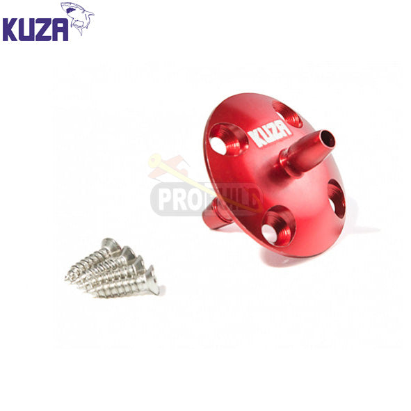 This large scale fueling vent is perfect for airplanes with a fully cowled engine. It helps keep the fuel system nice and tidy and with its red anodized finish and Kuza logo it looks good to. The fuel vent is CNC machined from a solid billet of aluminum for lightness and durability .