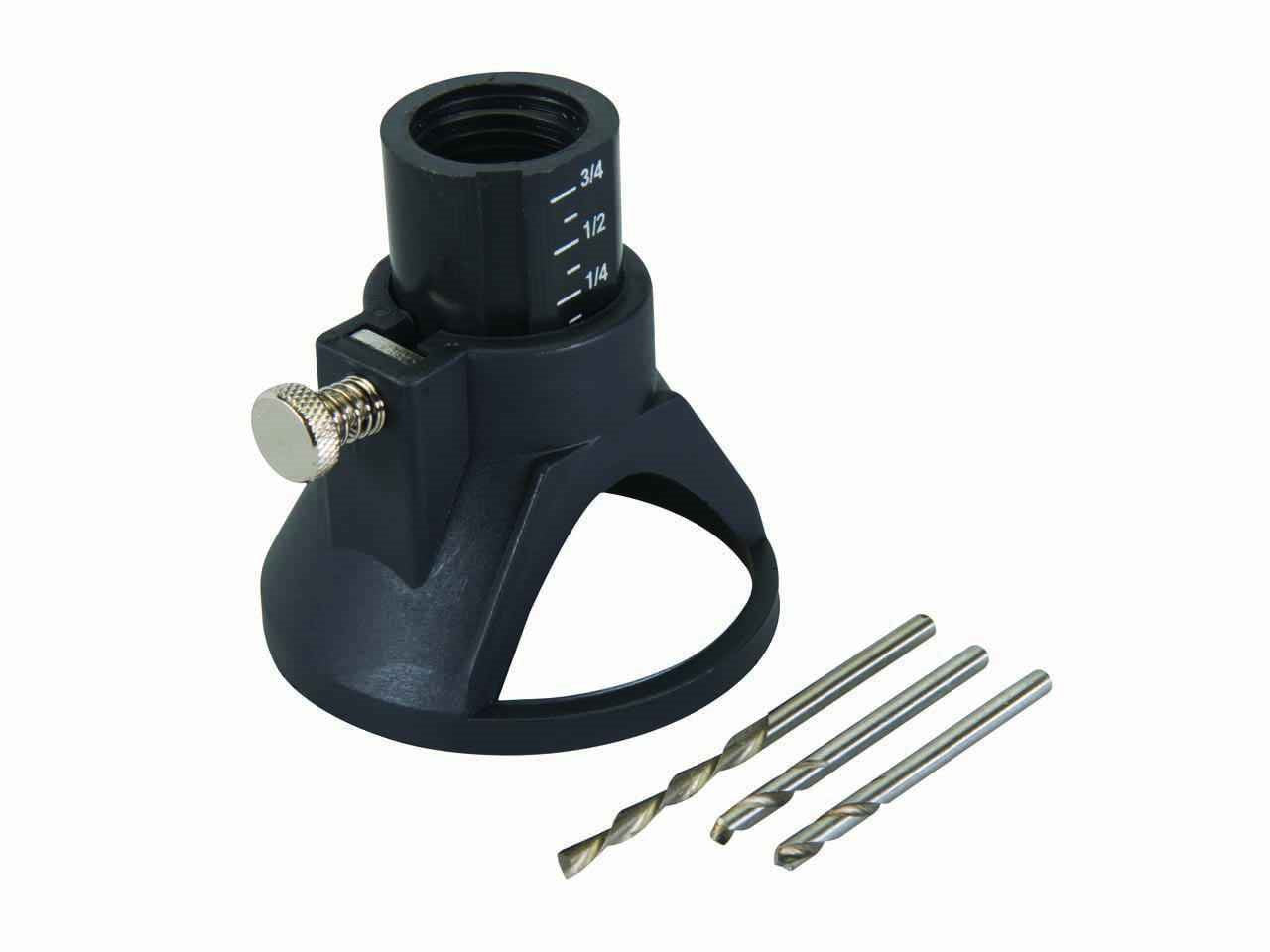 Converts rotary tool to plunge spiral saw and plunge router. For cutting precise patterns in thin sheet wood, soft metals, alloys and other low density materials. For routing of profiles in wood and plastics. Compatible with most rotary tools including Silverline, GMC and Dremel. Mandrel 3.17mm. Max 28,000rpm.