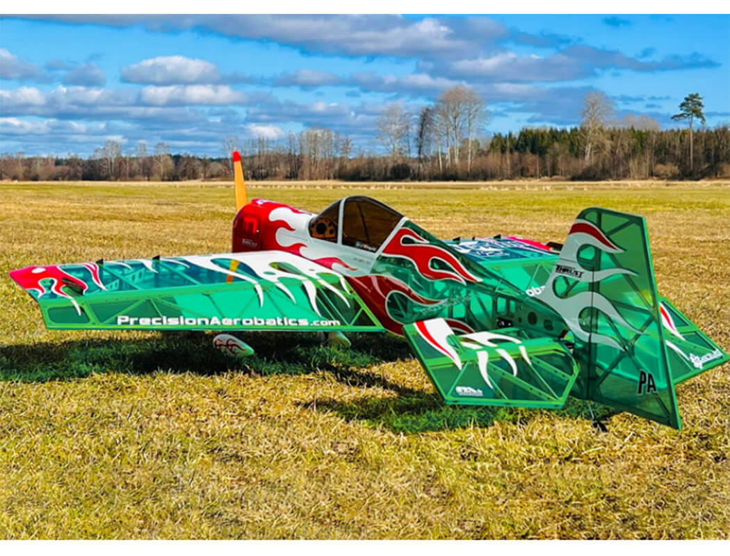 Its aerodynamic design allows high-speed precision flying without compromising slow, controlled 3D manoeuvres. With enormous control surfaces and responsive linkage geometry, even complex moves like stationary flat spins, torque rolls, knife-edge loops, and waterfalls become second nature.