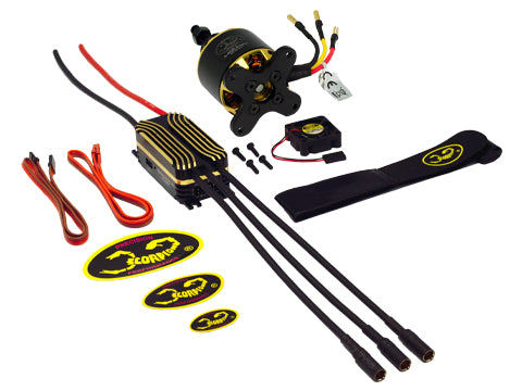 In combination with our new A-Series motor line debut, we are also please to announce our new "PLUG-N-POWER" combo kits! We wanted to take the guess work out of Electric Power Systems, and provide our customers with a simple, convenient and reliable power system for their 90E /20cc-25cc sized airplanes commonly used in 67"-70" acorbatic airframes . The A-4225 PNP Combo is the solution. This pairs our high power and high efficiency A-series motors with one of our suitably sized, pre-programmed, Tribunus III ESCs! Providing you with a tested, proven, and convenient power system combo, which is sure to provide you immense power, at the best efficiency! This PNP combo is ready to easily bolt on, and give you the power you need, with the efficiency you want.