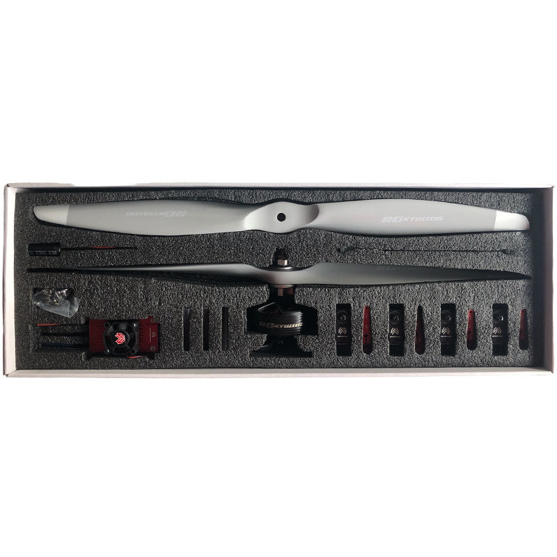 This is a power pack specially developed for 3D model aircraft with a wingspan of 67 inches. This is a combination set using 6S power battery! After careful screening and long-term flight durability testing, we require lightweight and compact! So we made special detail optimization! We also made special design and special size requirements for ESC output wires and motor output wires. During the installation process, you only need to connect according to the color of the wires to realize the forward rotation of the motor! The overall installation effect is more concise and elegant! The transparent heat shrinkable tube in the box is used to wrap the ESC output wire and the motor output wire The connection between! The design details are in place!