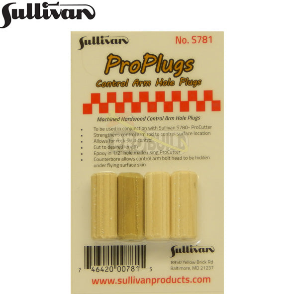 ProPlugs, Control Arm Hole Plugs. To be used in conjunction with the S780 – ProCutter. Strengthens control arm rod to control surface location, allowing for rock solid control. Cut to desired length. Counterbore allows control arm bolt head to be hidden under flying surface skin.