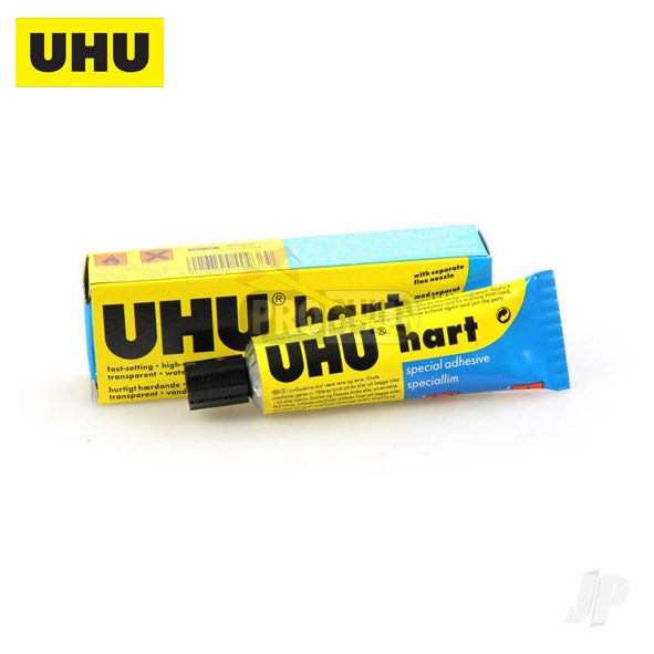crystal clear, quick-setting special adhesive for assembling small parts in model building, handicraft and general use at home. Particularly suitable for balsa wood and wooden materials 35g tube with a separate fine nozzle.UHU hart is a crystal-clear, fast drying adhesive for assembling small parts in model building, for handicraft work and for household tasks. Particularly suitable for balsa wood and other wooden materials. UHU hart is also suitable for stiffening and sealing the surface of materials. Dries hard.
