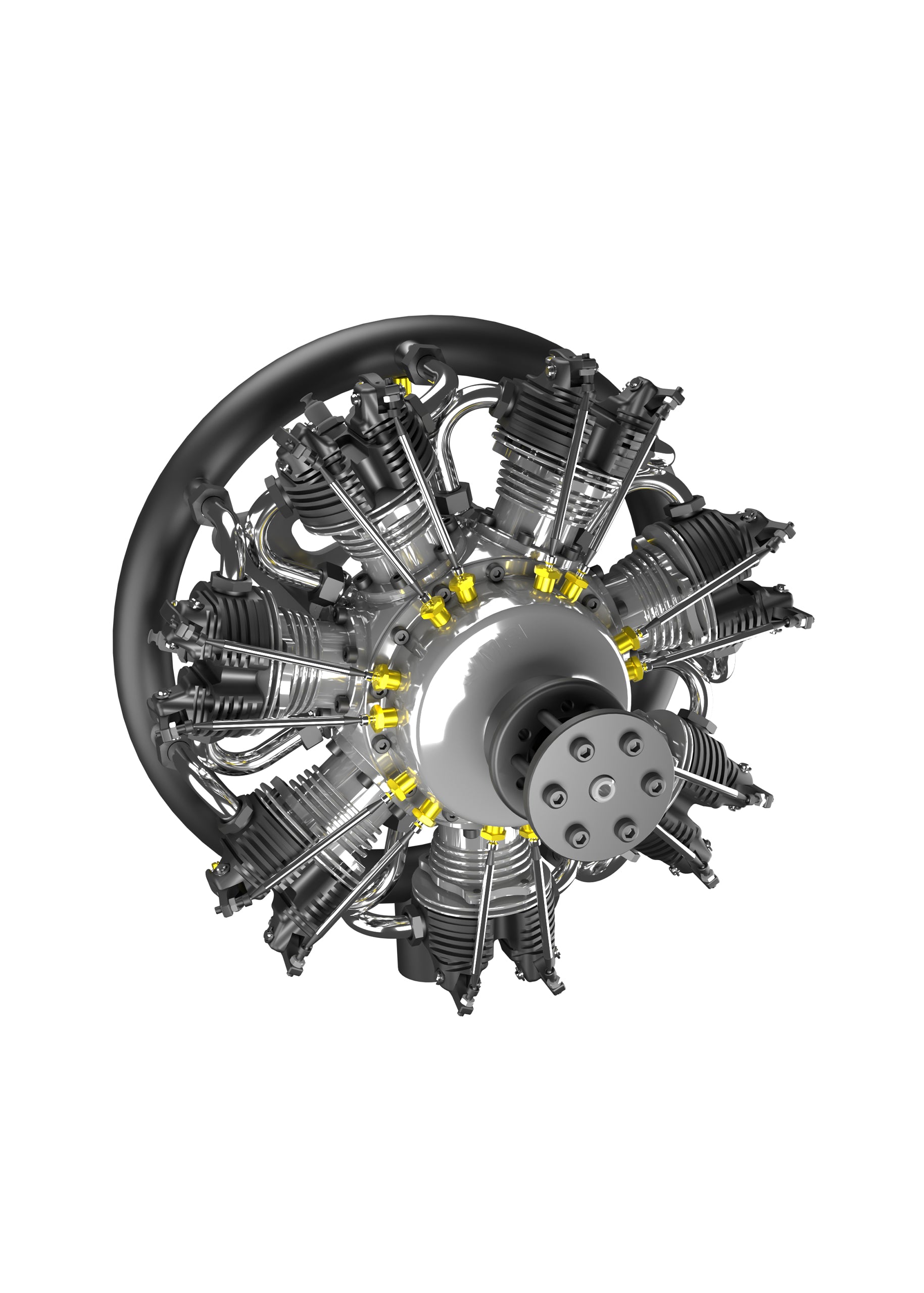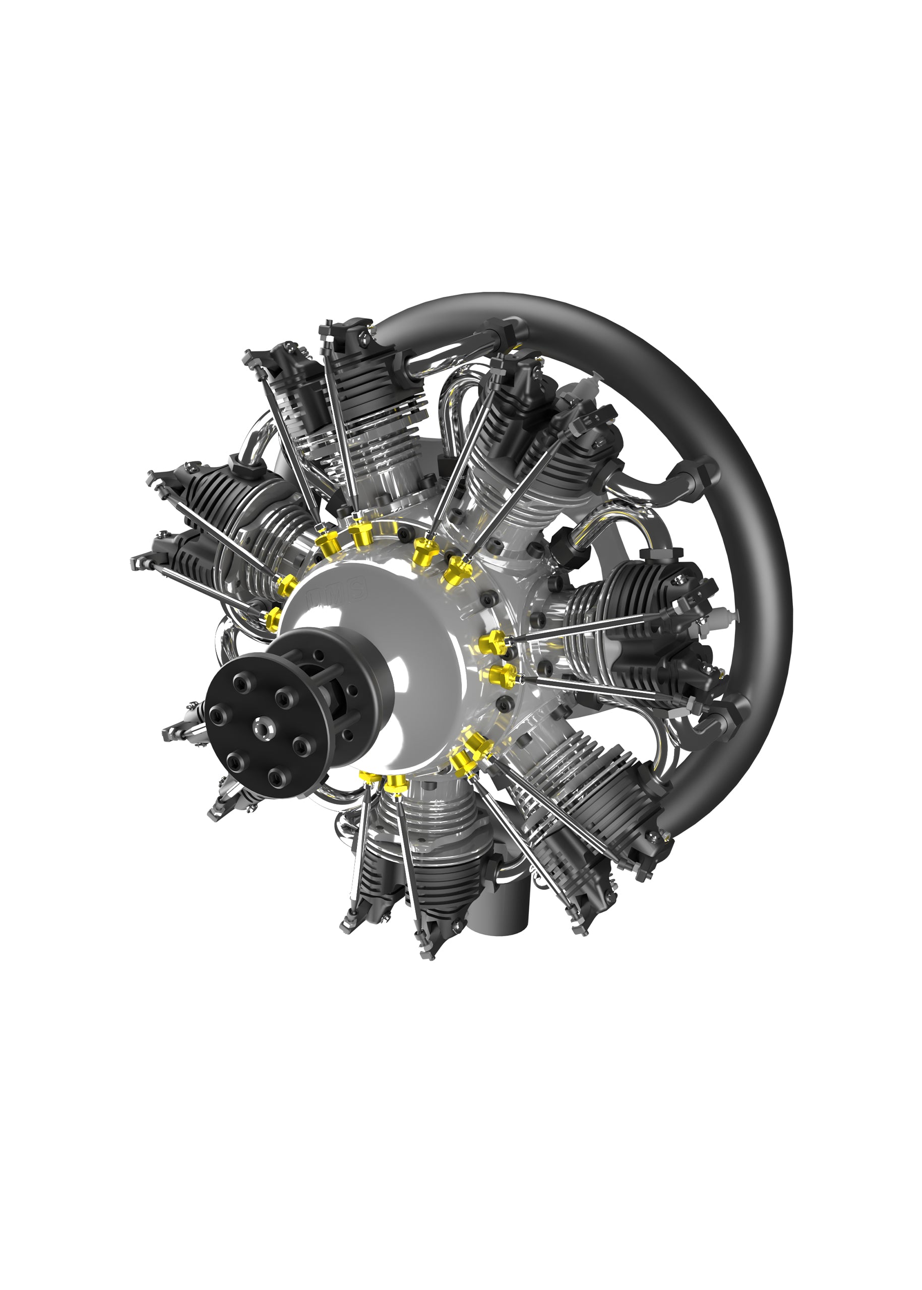 7-cylinder 4-stroke radial engine with authentic scale appearance
