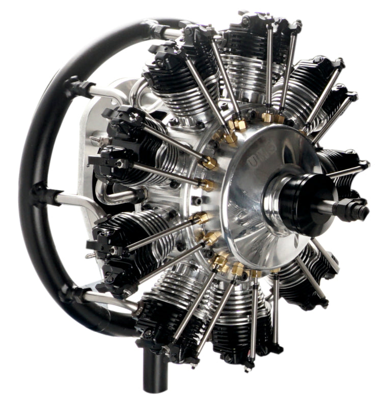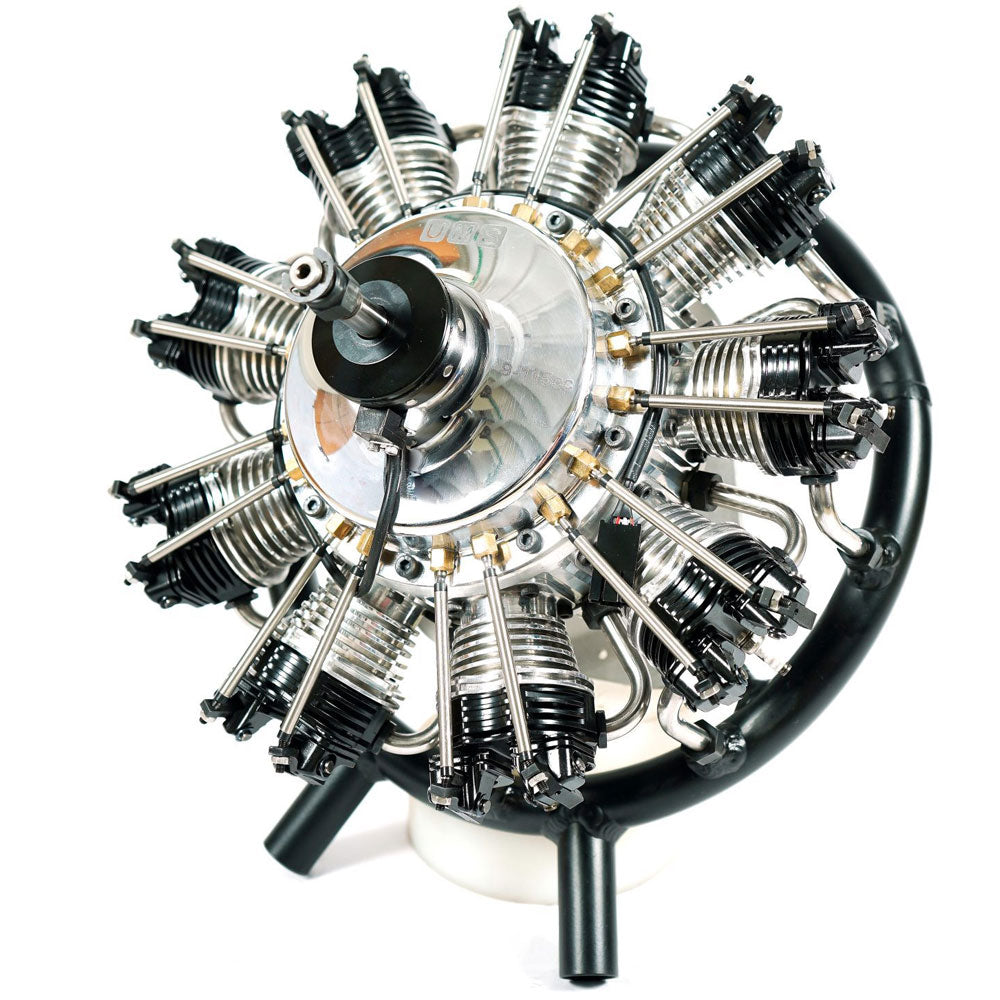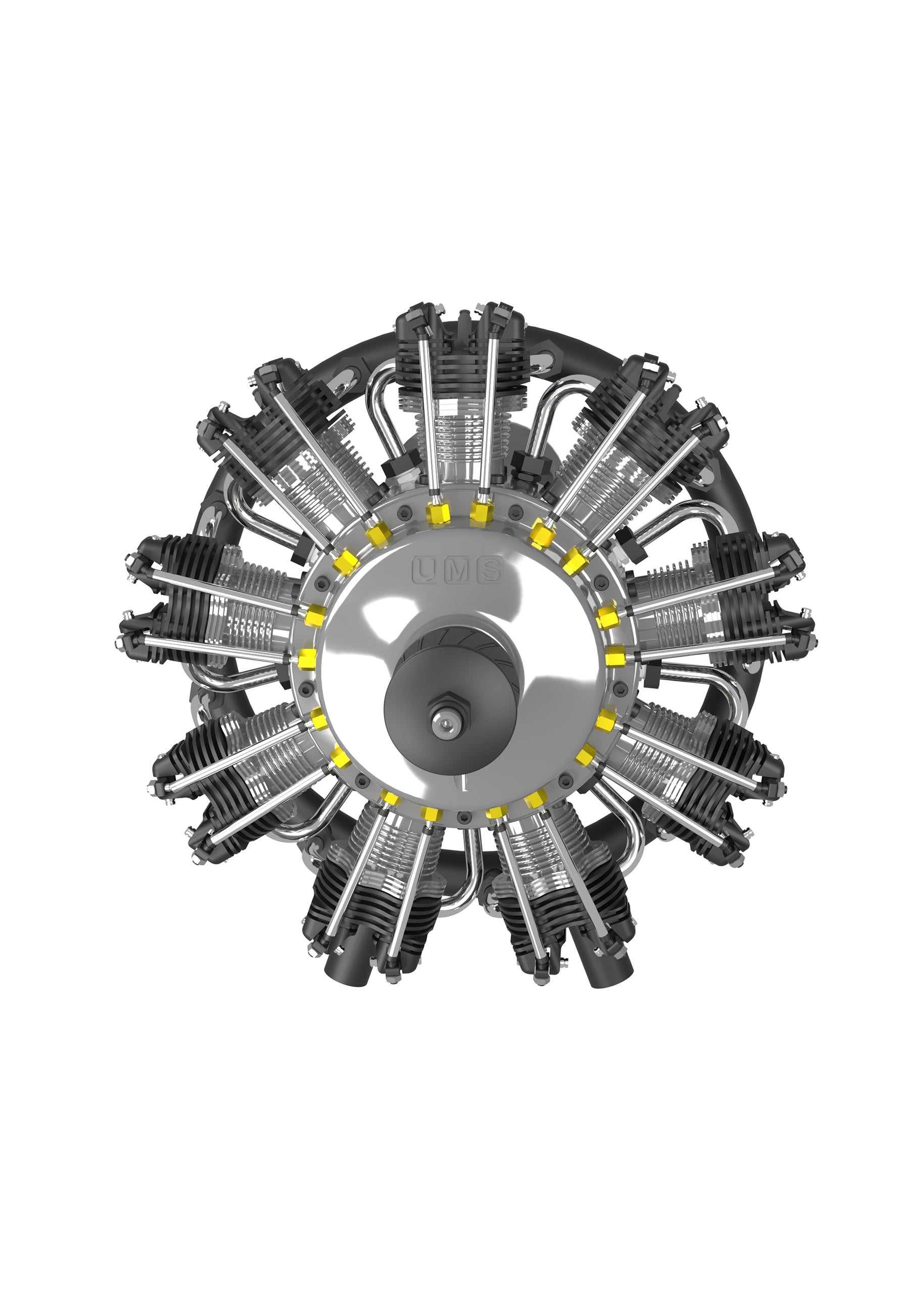 The UMS 9-115cc Radial Engine represents the pinnacle of compact multi-cylinder radial engineering. Featuring a classic 9-cylinder configuration, it delivers exceptional visual authenticity while providing smooth, well-balanced 4-stroke power across the RPM range.