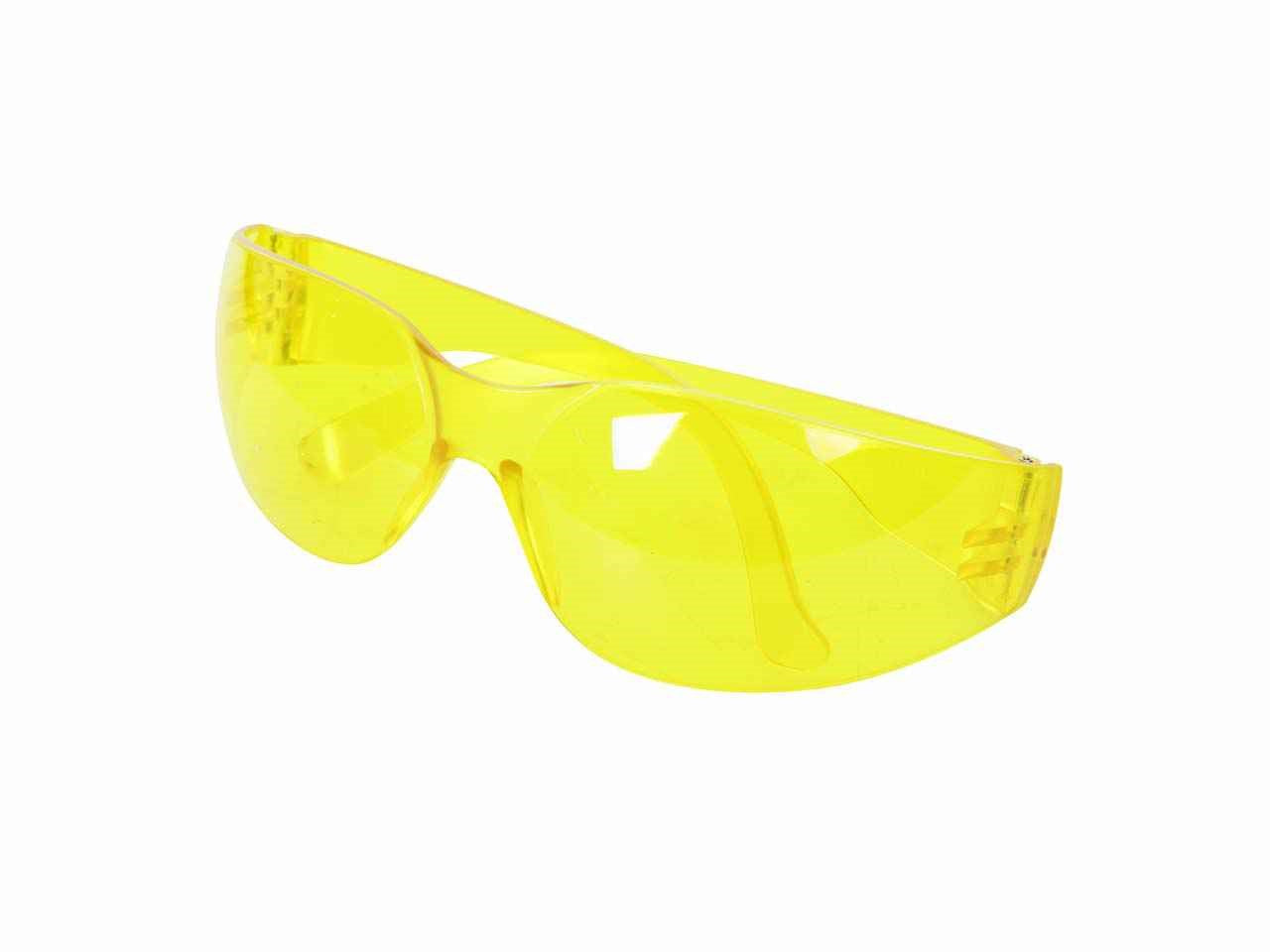 Safety glasses with yellow UV protective tint ideal for low light conditions. Impact and scratch resistant polycarbonate lenses. Wraparound design for maximum visibility and eye protection. Lightweight frame. Ideal for use in the workshop or general DIY. Conforms to EN166.
